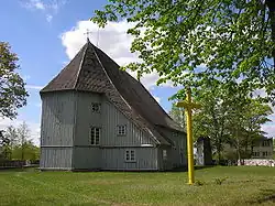Current wooden church was built in 1752 and consecrated by Bishop of Samogitia Antoni Dominik Tyszkiewicz (Lithuanian: Antanas Domininkas Tiškevičius) on 26 April 1761.[2] It was renovated in 1880. During the Second World War, in 1944, the church suffered great losses because its tower was destroyed and its wooden belfry was burned.