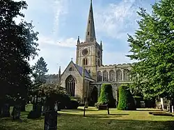 The Collegiate Church of the Holy and Undivided Trinity, Stratford-upon-Avon, is a Grade I listed[3] parish church of the Church of England in Stratford-upon-Avon, Warwickshire, England. It is often known simply as Holy Trinity Church or as Shakespeare's Church, due to its fame as the place of baptism and burial of William Shakespeare. More than 200,000 tourists visit the church each year.[4]