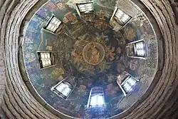 The lower part of the chapel is made of unhewn stone, the upper part of brickwork. It consists of a central room in the form of a tetraconchos, inscribed in a square and vaulted by a dome on a comparatively high tambour structured by archivolts and half-columns.