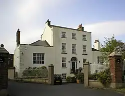Berwick House is a tall building at the bend in Whitehall Road. Recently occupied by the De La Salle Brothers, it seems to be identical to a house named Waxfield where the death is recorded in 1766 of John Lamprey. In 1836 it was known as Hazelbrook, a name which was later transferred to the nearby, now defunct, Hughes Brothers milk bottling plant. The Hughes Brothers original house, built in 1898, and called Hazelbrook House,[4] was rebuilt in the Bunratty Folk Park in 2001. From 1844 to 1899 it was known as Bachelor's Hall, after which it became the headquarters of a Charitable Institution under the name of Berwick Home. In 1944 it again became a private residence and the name was changed to Berwick House.