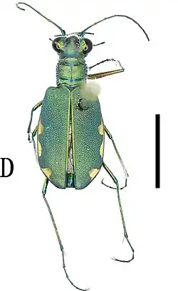 Cicindela chloris is a species of tiger beetle. This species is found in Afghanistan, Pakistan, Nepal, Bhutan, India, Laos[1] and China (Xizang).[2]