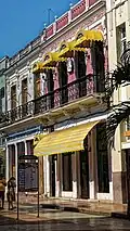 The central Calle D'Clouet with the "Hotel La Unión" (left) and the railtrack remains of the former urban tramway -