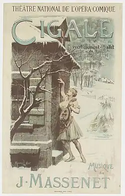 Cigale is a divertissement-ballet in two acts by Jules Massenet to a scenario by Henri Cain. It was composed in Égreville during the summer of 1902, first published by Heugel in 1903 and premiered at the Opéra-Comique in Paris on 4 February 1904.[1]