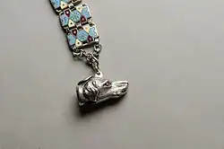 Both men's and women's watches were commonly attached to decorative fobs. However, because women were discouraged from smoking in public,[9] it was primarily men who wore the cigar cutter variety. The men's pocket watch was most ordinarily carried in a watch pocket (still seen today in some suit vests and most jeans[10]). It was almost always attached to a chain to secure the pocket watch against falling or theft while still having it readily available. Fobs at the ends of these chains became prevalent for various reasons, one of which was to hold a cigar cutter for men to prepare their cigars for smoking.[11] The cigar cutter trimmed the end of the cigar with a knife blade, scissors or slicer and/or poked a hole with a sharp needle-like piercer.[12]