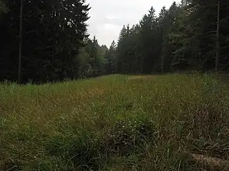 Most of the area periodically dries out, which is why the purple moor-grass and the heath false brome are dominant plant species here.[4]