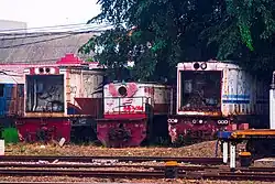 The yard of the Cikampek Station emplacement is also the site where unspoored or grounded hydraulic diesel locomotive units belonging to the Tanah Abang Locomotive Depot which are no longer in operation and are no longer used, such as C300 locomotives, BB304 locomotives, BB306 locomotives, BB303 locomotives and BB300 locomotives.[7]