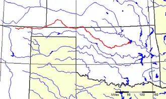 5. ^ a b c d e Larry O'Dell, "Cimarron River," Encyclopedia of Oklahoma History and Culture. Archived April 2, 2015, at the Wayback Machine Accessed March 6, 2015.