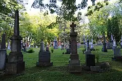 The Cimetière Notre-Dame-de-Belmont (French pronunciation: [simtjɛʁ nɔtʁə dam də bɛlmɔ̃]; English: Belmont Cemetery) is a historic garden cemetery located in Quebec City, Quebec, Canada.[1][2] The Roman Catholic cemetery was built between 1857 and 1859.[1] Its architect, Charles Baillargé, took inspiration from the noted garden cemetery of Green-Wood, in Brooklyn, New York State, United States.[1] The cemetery was blessed on July 10, 1859, and Belmont Cemetery's first burial took place two days later.[1]