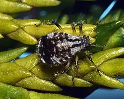 Cinara cupressi, the cypress aphid,[1] is a brownish soft-bodied aphid. It sucks sap from twigs of conifers, and can cause damage to the tree, ranging from discoloring of the affected twig to the death of the tree.[2] This insect appears to have originated in the Middle East and has been increasing its range and is considered to be an invasive species in Africa and Europe. It has been included in the List of the world's 100 worst invasive species.[2]