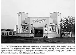 Starting in the late 1920s, Greek businessmen, who had also been among the earliest photographers in Sudan, established cinemas for silent films in Khartoum.[4] Local businessmen later founded the Sudan Cinema Corporation, which opened cinemas in other cities and distributed imported films.[8] The magazine El Fajr had weekly pages on science, literature and movies.[9]