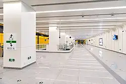 The station has an underground island platform.[3] There are 4 exits, lettered A, B, C and D. Exits A and D are accessible via elevators.