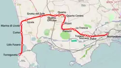 The Circumflegrea railway (sometimes also known as Line 5[2]) is a commuter railway line that connects Naples city centre with the northern Phlegraean Fields, a suburban area located west of the city. The line is operated by the Ente Autonomo Volturno (EAV) company.