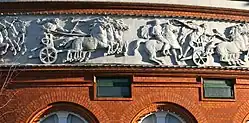 The building is circular and topped by a shallow dome. The most distinctive feature of the facade is a frieze located just below the roof on the periphery of the outer wall. It was created by the sculptor Frederik Hammeleff and survived the fire in 1906. It depicts motifs from ancient Rome and Greece.[2]