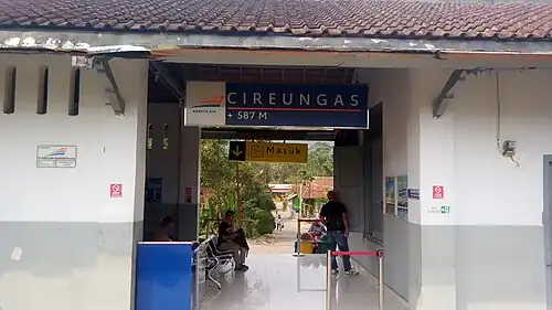 Cireungas Station (CRG) is a class III railway station located in Bencoy, Cireunghas, Sukabumi Regency. The station, which is located at an altitude of +587 m, is included in the Operational Area II Bandung and is a railway station located at the most eastern and southern of Sukabumi Regency.