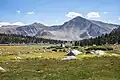 Cirque Peak is a 12,900-foot-elevation (3,900-meter) mountain summit located on the crest of the Sierra Nevada mountain range in California.[4] It is situated on the common border of Tulare County with Inyo County, as well as the shared boundary of Golden Trout Wilderness and John Muir Wilderness, on land managed by Inyo National Forest. It is 14 miles (23 km) southwest of the community of Lone Pine, 7.7 miles (12.4 km) south-southeast of Mount Whitney, and 3.2 miles (5.1 km) south of Mount Langley, the nearest higher neighbor. Cirque Peak is the highest point of the Golden Trout Wilderness, and ranks as the 175th highest peak in California.[5] Topographic relief is significant as it rises 1,800 feet (550 meters) above Cirque Lake in approximately one mile. The Pacific Crest Trail traverses the southwest slope of this mountain, providing an approach option. The mountain was apparently named in 1890 by Joseph Nisbet LeConte and companions who noted the remarkable cirque on the north aspect.[6]