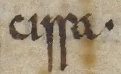 The Anglo-Saxon Chronicle lists Cissa as one of the three sons of Ælle, who in the year 477 arrived in Britain at a place called Cymenshore (traditionally thought to have been in the Selsey area of Sussex[1]). The Chronicle recounts that Ælle and his three sons fought three battles: at Cymenshore in 477, one near the banks of Mercredesburne in 485 and lastly one at Pevensey in 491, where (the Chronicle claims) all Britons were slaughtered.[1][2][3][4] The Anglo-Saxon Chronicle was originally compiled in Winchester, the capital of Wessex, and completed in 891. It was then distributed to various monasteries throughout the country for copying. The different versions were then updated periodically. The chronicle charts Anglo-Saxon history from the mid-fifth century until 1154. Before the Norman Conquest of 1066 the manuscripts were mainly written in Old English; post-Conquest the scribes tended to use Latin.[5][6] The original Chronicle was commissioned during the rule of Alfred the Great r. 871–899 over 400 years after Cissa, and historians regard the accuracy of the events and dates listed during the fifth century as questionable.[5][6][7] The sources for the fifth century annals are obscure, however an analysis of the text demonstrates some poetic conventions, so it is probable that the narrative derived from an oral tradition, such as sagas in the form of epic poems.[4][5] The Anglo-Saxon Chronicle was commissioned for a number of reasons, including propaganda—it provided genealogies of the kings of Wessex, showing them in a positive light. (Wessex had absorbed the Kingdom of Sussex, founded by Ælle, during the reign of Egbert of Wessex[5] r. 802–839.)