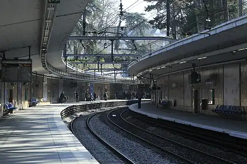 Cité Universitaire station (French pronunciation: [site ynivɛʁsitɛːʁ]) is a station on RER B of Île-de-France's express suburban rail system, the Réseau Express Régional. It is situated in the 14th arrondissement of Paris. The station serves the Cité Internationale Universitaire de Paris (CIUP) and replaced a line on the Ligne de Sceaux called Sceaux-Ceinture, after the fact that it was a junction with the now-inoperable Ligne de Petite Ceinture