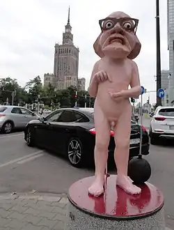 Citizen Włapko (Citizen Skimmer, Polish: Obywatel Włapko) is the name of a 1.10 meter-high sculpture symbolizing a corrupt official.[1] The satirical figure shows a naked boy with the head of a mature man wearing glasses with a mustache and beard. His right forefinger pointing to his left palm indicates a request for money. There is a bomb next to his left foot, which symbolizes the explosive nature of the request, and the nudity symbolizes the whole, "naked" truth.