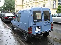 The Citroën C15 is a panel van produced by the French manufacturer Citroën from late 1984 until 2006. It was the successor to the Citroën Acadiane, which had replaced the Citroën 2CV vans that pioneered the box van format from the 1950s to the 1970s, although the Acadiane continued in production alongside the C15 initially.[3] The name refers to the car's 1,500 kg (3,310 lb) French gross vehicle weight rating and indicates its position beneath the C25 and C35 in Citroën's commercial vehicle range at the time.[3]