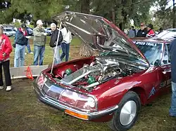 This car was unusual for France – production of luxury cars was heavily restricted in the country by post-World War II puissance fiscale horsepower tax, so France had not had a production vehicle in this market sector since before World War II.[4] The SM had an engine of only 2.7 liters owing to these regulations; it was the first response to the luxury/performance sector since the export oriented Chrysler Hemi V8 engine Facel Vega in the late 1950s.[5] Citroën's flagship vehicle competed with high-performance GTs of the time from other nations and manufacturers, such as Jaguar, Ferrari, Aston Martin, Alfa Romeo, Mercedes-Benz, Porsche and Maserati's Merak.