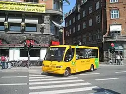The small buses and one-way route was well suited for the narrow and often one-way streets of inner Copenhagen (Indre By). The buses make almost no noise compared to regular buses and are the first of their kind in Denmark.[1]