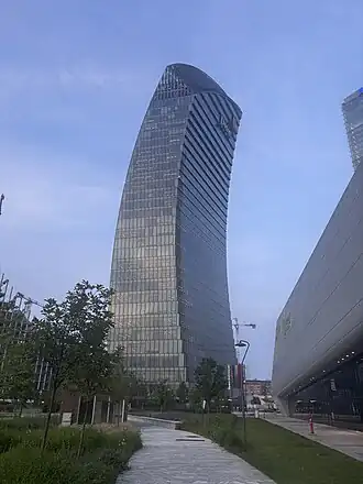 CityLife is a residential, commercial and business district situated a short distance from the old city centre of Milan, Italy; it has an area of 36.6 hectares (90 acres). It is a redevelopment project on the former grounds of Fiera Milano after its relocation to the nearby town of Rho.