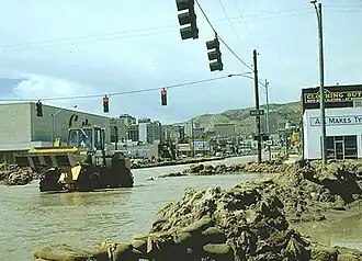 The stream remained underground until record precipitation in the winter of 1982/1983 produced an enormous snowpack in the Creek's watershed. The late onset of warmer temperatures and a sudden warm spell in May swelled the stream. Saturday night, May 28, the North Temple conduit became clogged, and the whole river overflowed into the streets, down Canyon Road, and onto State Street. Volunteers worked frantically that Sunday morning to protect local buildings by sandbagging State Street, channeling the current down the eastern half of the street to large storm sewers near the Salt Lake City and County Building at 400 South. When the sewers overflowed, the "State Street River" was extended to 1300 South, where the current flowed with other streams in conduits to the Jordan River. Temporary pedestrian bridges were built over State Street, which is part of US-89 and one of Salt Lake City's primary corridors.