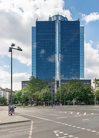 City Gate, formerly Büro Center Nibelungenplatz (known as BCN) and Shell Tower, is a 27-storey, 110 m (360 ft) skyscraper in the Nordend-West district of Frankfurt, Germany. The building was constructed in 1966. It was one of Frankfurt's first buildings to reach over 50 m (160 ft), and it remains the tallest building in the Nordend district. It is located at Nibelungenplatz, a busy junction in the Nordend.