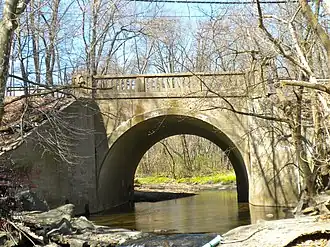 City Line Avenue Bridge is a historic concrete barrel arch bridge spanning the East Branch of Indian Creek and located in the Overbrook Farms neighborhood of Philadelphia, Pennsylvania. It was built in 1913, and is a single-span bridge. The barrel arch measures 20-foot-wide (6.1 m).[2]