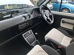 Designed by Pininfarina and introduced in August 1984, the drop-top Cabriolet utilized the wider track, fenders, and bigger bumpers of the Turbo II, but was only normally available with the naturally aspirated 67 PS (49 kW) engine. These wide-track models were designated with the model code FA rather than AA. The Cabriolet was well equipped, with a glass rear window and twelve exclusive pastel color options. This was the first car of this kind built in Japan, with a worldwide wave of convertibles based on family cars following suit throughout the 1980s.[4]