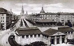 City West started developing in the Wilhelmine era from about 1895 onwards as a commercial and entertainment centre of the German Empire's capital, in addition to the historical centre in Mitte. At that time, Charlottenburg, Schöneberg and Wilmersdorf still were towns in their own right, rivalling with Berlin for locational advantages. The KaDeWe opened in 1907 competed with the Wertheim and Tietz department stores on Leipziger Straße in Mitte. Likewise, the Theater des Westens opened in 1896 or the Romanisches Café from 1916 were newly established cultural institutions.