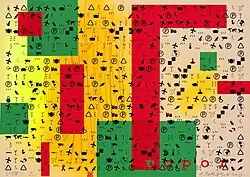All graphic sheets are made in color, in various printed graphic techniques: lithography, linocut, woodcut, plywood engraving, serigraphy, stencil, etching, manual typesetting, manual photo printing and others. So each sheet of this edition is different from one another: tinting with a brush and spray paint, colored pencils, watercolor or acrylic. All graphic sheets are created on paper of different type and tone, specially selected for each author, which was the project's program setting.[3]