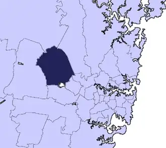Blacktown City Council is a local government area in Western Sydney, situated on the Cumberland Plain, approximately 35 kilometres (22 mi) west of the Sydney central business district, in the state of New South Wales, Australia. Established in 1906 as the Blacktown Shire and becoming the Municipality of Blacktown in 1961 before gaining city status in 1979, the City occupies an area of 246.9 square kilometres (95.3 sq mi) and has a population of 410,419, making it the most populous local government area in Sydney.[2] It is a member council of the Hawkesbury River County Council.