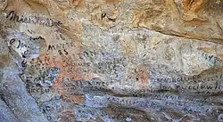 One of the favorite camping spots for emigrants was Camp Rock. Emigrants wrote on the stone face with axle grease writing out their names and dates of passage.[12]