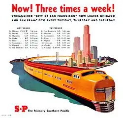 - ^ "NEW STREAMLINER FOR S.F.-CHICAGO RUN". San Francisco: Southern Pacific News Bureau. January 17, 1938