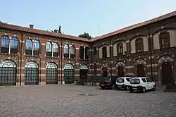 Their demolition is likely attributable to before the 14th century: indeed, from the Notitie Cleri Mediolanensi of 1398, an inventory of religious buildings in the Milanese area regularly compiled by the Church, it appears that the area occupied by the modern Galleria INA, in place of the Castello dei Cotta and the wall, housed the Convento degli Umiliati and the Church of Santa Maria del Priorato, which were demolished in 1953 to make way for the Legnano gallery.[23][24] The moat, however, existed at least until the 15th century, as testified by the chronicler Bernardino Corio, who described this defensive work as a "very large ditch".[25]