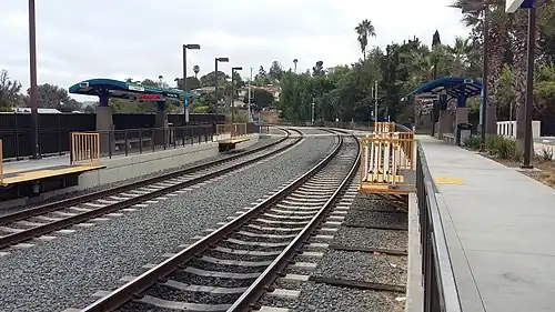 Civic Center–Vista station (previously known as Escondido Avenue station and Civic Center Drive station) is a station in Vista, California that is served by North County Transit District's SPRINTER hybrid rail line. The station is located at 810 Phillips Street.