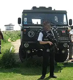 The Civil Nuclear Constabulary (CNC) (Welsh: Heddlu Sifil Niwclear) is a special police force responsible for providing law enforcement and security at any relevant nuclear site and for security of nuclear materials in transit within the United Kingdom.[4] The force has over 1,500 police officers and support staff.[5] Officers within the force are authorised firearms officers due to the nature of the industry the force protects.[6]