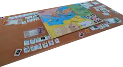 A projected sequel of the Civilization board game in the ages after antiquity drove the development of Age of Renaissance, published by Avalon Hill in 1996. This game, designed for 3 to 6 players, has kept only a few features of 'Civilization, such as commodities (no longer collectible cards but territories) and the civilization advances (no longer cards but ticks in a check list).