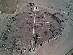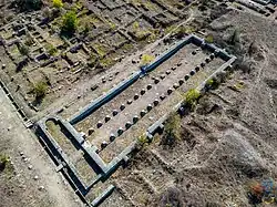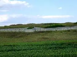 The city was destroyed by the Costoboci in 170 in the Marcomannic Wars, after Legio V Macedonica was moved from Troesmis, as shown by funerary inscriptions of Lucius Fufidius Iulianus,[5] a decurion and duumvir (magistrate) of the city, and of a man named Daizus.[6] Vexillations of the legions I Italica and V Macedonica were deployed at Tropaeum in this period, perhaps to defend against these attacks.[7][8] It was rebuilt under the Severan dynasty (193-235) though was again destroyed by the Carpi (Goths) in 238, and again substantially rebuilt during Constantine the Great's rule with improved defensive walls.