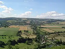 Called the "Capital of Norman Switzerland", the village of Clécy owes its fame to the rugged and verdant Armorican massif, with valleys through which the Orne flows.[7][8] In addition to the Orne, two streams, The Val Fournet and La Porte also flow through the commune.[9][10]