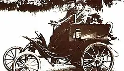 1896 – A . C. Krebs at the steering lever of his system car. -