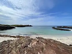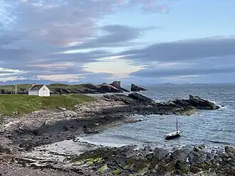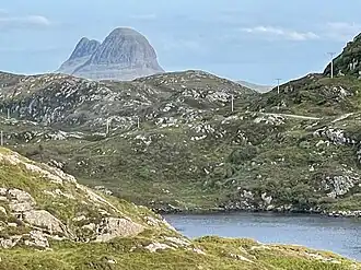 Clachtoll (Scottish Gaelic: Clach Toll) is a coastal fishing and crofting village situated on the Bay of Clachtoll, in the ancient parish of Assynt, Sutherland county, in the Highland Council area on the north western edge of Scotland.[1] It is in the postal district of Lairg, a larger village about fifty miles (80 km) inland. South of the village center is the start of the Clachtoll Peat Road––a hiking trail that extends into the Scottish Highlands with views of Suilven and other mountains in the distance.[2]