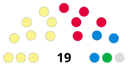 Following the 2022 election and a subsequent change of allegiance in December 2022, the composition of the council was:[23]