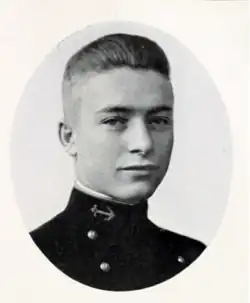 In 1918, he was listed as one of the midshipmen taking part in a practice cruise on the USS Missouri (BB-11) as part of the Third Class of the US Naval Academy.[13] In 1919, he took part in his final practice cruise as a First Class midshipman serving on the USS North Dakota (BB-29).[14] Later that year, he formally began duties on the battleship USS Wisconsin (BB-9) based in Philadelphia as a machinist.[15]