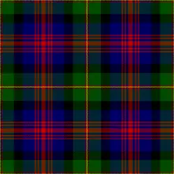 MacLennan Tartan: Fractional count of threads given by James Logan in 1831: 8 yellow, 4 black, 4 red, 56 green, 42 black, 56 blue, 6 red, 6 blue, 6 red, 10 blue, 18 red (centre) "Middle Line is Thicher, signifying a battle honor." Logan Taran: is different recorded in Dundee in 1793: 2 blue, 6 red, 18 green, 6 red, 2 blue, 6 red, 18 blue (NO YELLOW). MacLennan Tartan: 176 blue, 30 black, 18 green, 24 red, 40 green, 6 black, 16 yellow, 6 black, 40 green, 24 red, 18 green, 30 black, 48 blue, 30 black.