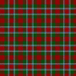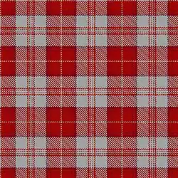 Menzies 1815[17] | The red and white Menzies tartan appears in the Cockburn Collection (c1815) under the name, MacFarlane, but this is taken to be an error on the part of General Cockburn at a time when the establishment of clan names for tartan was in its infancy. The same sett was certified as Menzies, by the clan chief, in the collection of the Highland Society of London (c.1816). The tartan is woven in various colours, green, black, red and white to the same design. |