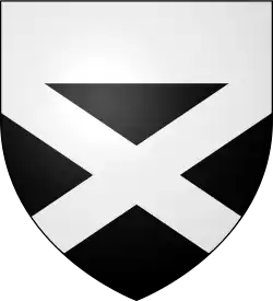 ![]() Crest: a crest coronet and issuing therefrom a cross crosslet fitchee Sable surmounted of a saltire Argent. | |||