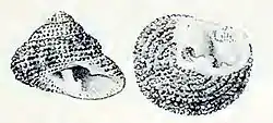 | Drawing showing two views of a shell of Clanculus floridus | |
