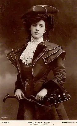 Early in her career, Mayne often played the "principal girl" in pantomimes for Francis Laidler, among others.[1] She also became a noted music hall performer. Later, she played the "principal boy" roles.[2]
